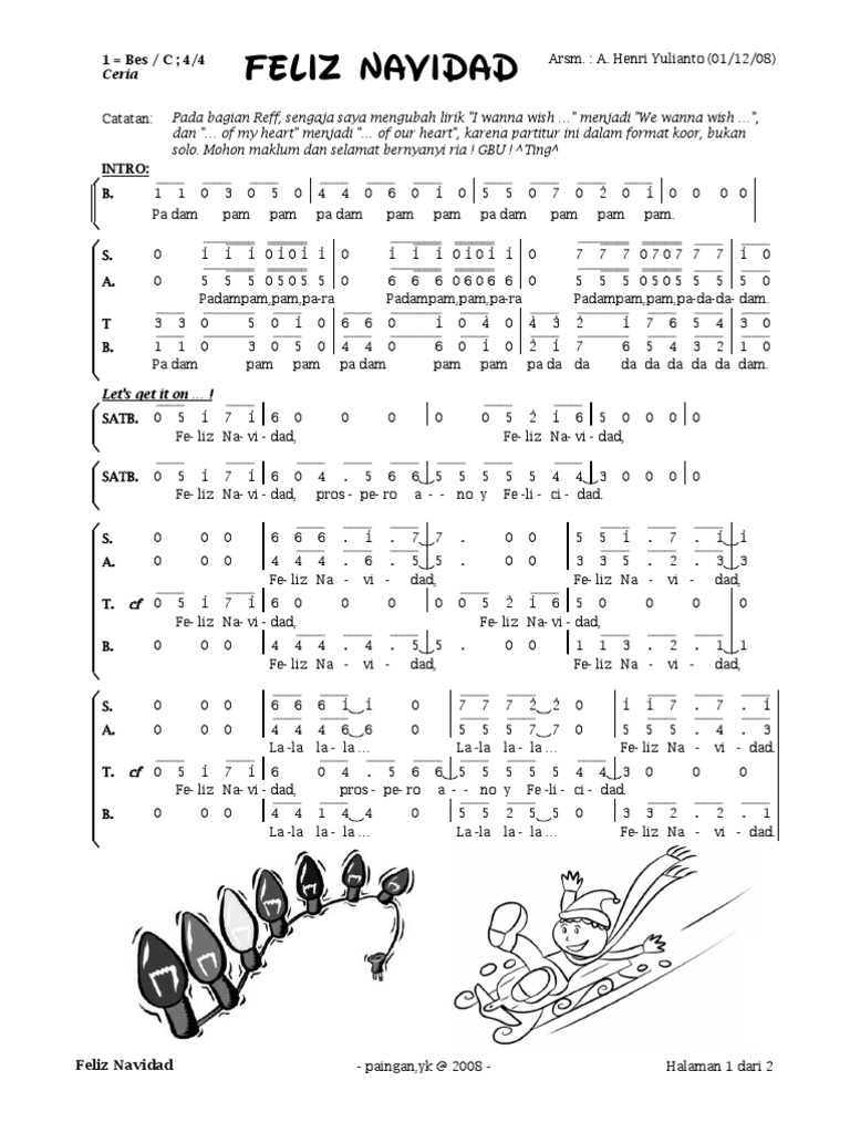 Feliz Navidad - painganyk 2008 - Halaman 1 dari 2. Feliz Navidad Lyrics Jose Feliciano ini adalah hak cipta hak milik dari pengarang artis band dan label musik yang bersangkutanSeluruh media termasuk lirik lagu ataupun Chord lagu yang terdapat. Notasi musik standar saat ini adalah notasi balok yang didasarkan pada paranada dengan lambang.