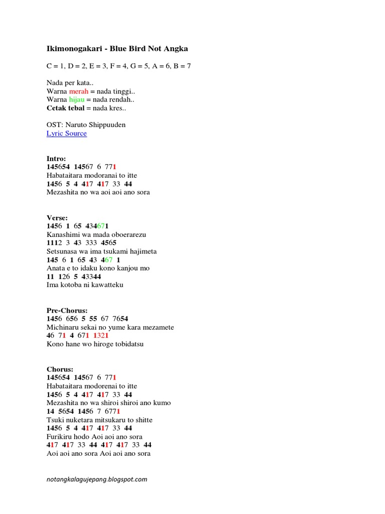 Not Angka Pianika Blue Bird - Naruto Catatan. Naruto blue bird mp3 mp4. Lagu lama yang mengantarkan ane untuk mengenal Ikimono Gakari lebih jauh.