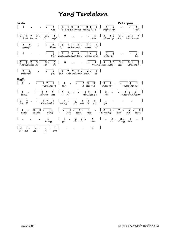 Not angka lagu yang terdalam. Sulit untuk pemula yang menggunakan pianika piano keyboard karena ada banyak sekali nada miring pada lagu ini. Yang Terdalam dirilis pada tanggal 3 Mei 2003. Not Angka Lagu Virgoun Surat Cinta Untuk Starla Pianika Surat.